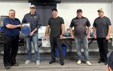 Mayor Andy Lennox congratulates the winners of the Early Draw at the 2025 Mayor’s Charity Bonspiel. Pictured, from left: Mayor Lennox, Darren Jones, Brian Corley, Scott Lennox and Mitch Ferguson.